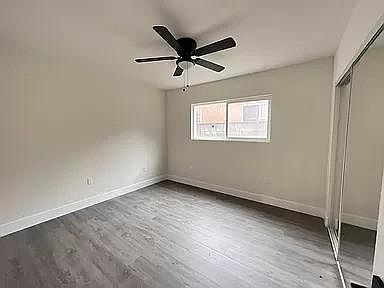 Newly remodeled 1 bed 1 bath unit featuring fresh paint and new hard flooring throughout. The kitchen boasts new countertops and cabinets, along with appliances including a dishwasher, garbage disposal, stove, and range. The bathroom has also been remodeled, featuring a new tub, toilet, fixtures, and tile flooring. Additionally, the unit is equipped with wall heaters and ceiling fans throughout. Please call to schedule a showing.