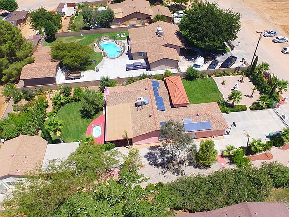 Perfect gated Family Compound, room for all your toys. Mediterranean Style Single Story Villa features 4 sumptuous bedrooms, tile and laminated flooring throughout. Park like grounds featuring in ground sexy spa, fruit orchards, flowers,and carpet like lawn. Permitted Guest House- Perfect for Mom and Dad/Office or Artist Studio, 2 bedrooms 1 bath Oh did I mention.....NO Electric Bills! Yes Solar powered!!!! A Must See...... It won't last!
