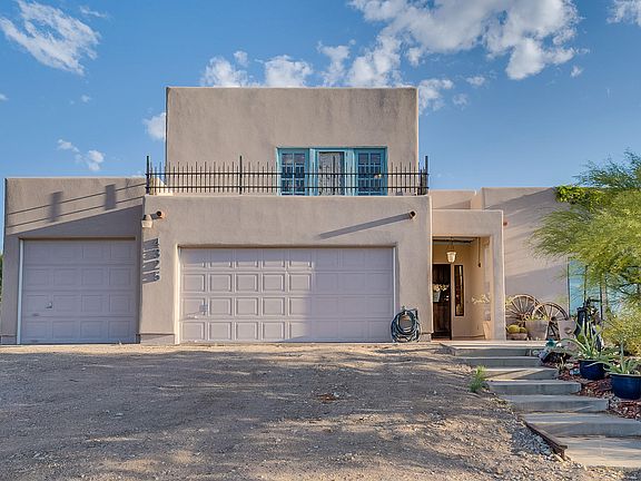 Beautiful two story house nestled on over 3 acres at the base of the serene Tucson Mountains with views of Cat Mountain. This 5 bedroom, 4 bath house includes a ground floor spacious guest living quarters and ensuite that can also be used as a second master, bonus room or office. 3 car garage, 3 car carport and outdoor storage area. Large screened-in back patio as well as plenty of outdoor patio areas and a dog run. Inviting balcony outside of the master with scenic mountain and city views. A sanctuary of natural beauty and privacy, yet convenient to shopping, restaurants, hiking and biking.