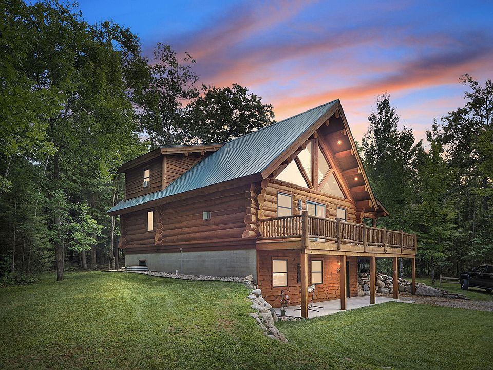 Log Home on 10 acres, large pole building, and Mullett Lake waterfront all in one package. This is impressive property in so many ways from the expansive and custom log home with 3 bedrooms 3 bathrooms with a fully finished lower level to the 34x64 pole building that includes a half bath and barn wood and corrugated steel ceilings is unique all in its own. Then let's talk about the privacy 10 acres offers with nice trail systems all through it.... Then there is the Mullett Lake property with 36' of frontage with cute cabin with potential and a great place for a boat and dock with sandy bottom at the end of the dock. There is no better way to experience the grandeur of what this really is unless you see it.