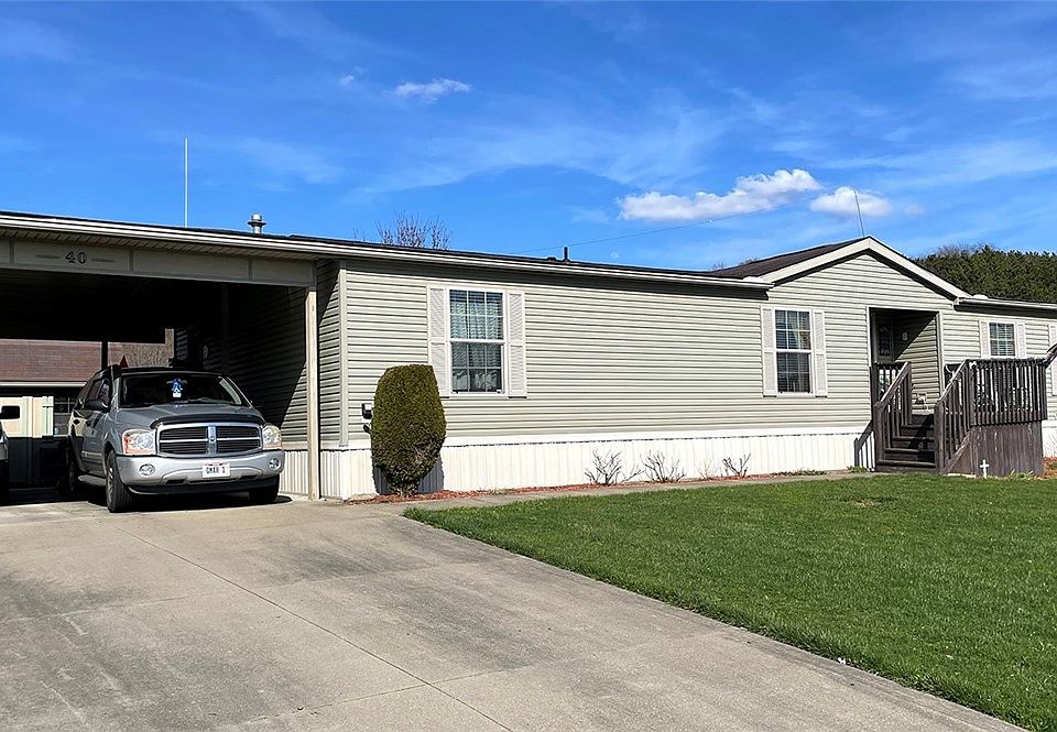 Modular home only. Home can be moved to your own site, or rent in this quiet mature retirement community, lot rent is $265 a month which includes your water and sewer. 2009 Colony Deercreek model which is 28' x 72', with a two-car carport, front deck, concrete driveway, and extra utility shed. This home has a large open rear yard with nice views. The home has a large kitchen with loads of cabinets and counter space, plus walkout to the rear yard. Great room, den area, three bedrooms, and two full baths. Well maintained home. Owners moving south, possession negotiable. Lot #40.
