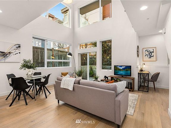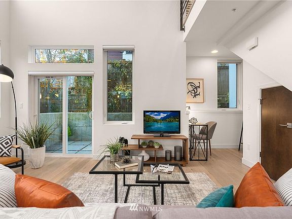 You can have it all in this contemporary Wallingford gem! Savor stunning views of Lake Union, Mt Rainier & downtown from this corner unit townhome. Ideal layout has a true main floor living space boasting vaulted ceilings & walls of windows, chic vinyl plank floors & a gorgeous chef's kitchen w/ KitchenAid appliances, huge center island & sleek fixtures. Upstairs, 2 spacious bedrooms including an owner's suite w/ a spa-like bath & oversized walk-in shower. All this plus efficient mini splits for heat & A/C, an office nook, a rooftop deck & designated underground parking. Walkscore of 93: great eats, shops, groceries, parks & fun in Wallingford & Fremont w/in blocks! Easy access to I-5, Hwy 99 & transit. Seller-procured inspection report!