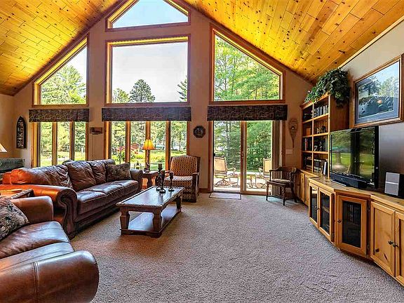GORGEOUS home on Otter Lake which is located on the popular Eagle River Chain. Main house has lake views that are breath taking. Beautiful knotty pine woodwork throughout with 6 panel doors, and tongue and groove vaulted ceiling in great room/loft. There is an additional guest house/4 car tandem garage that has an additional 972 square feet of living area that features a kitchen, living room, bedroom, and full bath. Both garages are heated to store your toys. Guesthouse comes furnished. Main House has a whole house generator. There is a separate well and septic for both houses.