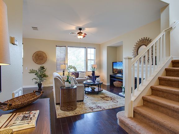 This one is finished with class - upgraded finish out move in ready home!! No rear neighbors! Limited homes in gated community Dos Lagos at Temescal Heights. Front and rear balcony - views facing towards the mountains, beautiful sunsets. Beautiful huge open kitchen with island, granite counters and newly installed range. Stainless steel appliances.Hardwood floors throughout and in upstairs master bedroom. Beautiful 18 inch tile on diagonal with accent inlaid tiles throughout kitchen and dining. Recently installed carpet throughout bedrooms. Downstairs study or bedroom with full bath. Beautiful archway entry, with water fountain at entry. Side entry garage. Large storage closet upstairs and under the stairway. Recently installed overhead storage in garage. House also has a Whole House Fan for quick cooling and energy savings. Excellent floor plan - one upstairs balcony at the back of the house, second balcony is at the front of the house. Master en suite has separate sinks, separate tub and shower. Large master closet. There are 3 other bedrooms upstairs, all good size. Backyard privacy - as the house sits up on a hill with no rear neighbors and wrought iron fencing for optimum views. City lights at night! Walking distance to Dos Lagos Golf Course, Dos Lagos Shops, Entertainment and Restaurants and Neighborhood Park. Great close in location, great area and great schools! This one is a beauty and won't last long!