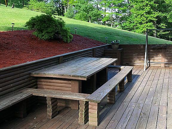 Nice private lot and split level home. 3 bedrooms and 2 bathrooms recently updated with ceramic tile. Open floor plan upstairs with kitchen and living area with 2 sky lights. Hardwood floor in living area and Master bedroom upstairs with an additional bedroom. Downstairs with ceramic tile throughout additions den with ceramic tile. 3rd bedroom downstairs with a bathroom and a utility laundry room. Beautiful deck with built in tables. New metal roof just installed. Must see to appreciate. 2 Extra lots included with home for a total of 2+ acres.