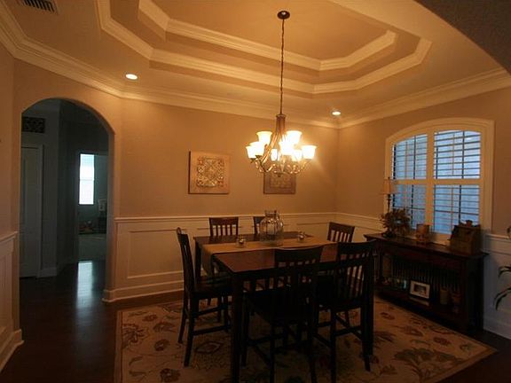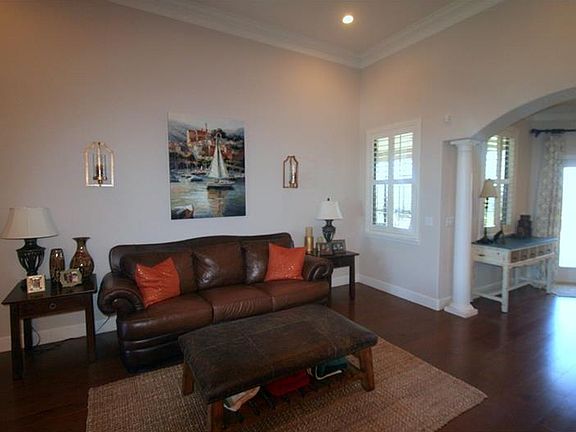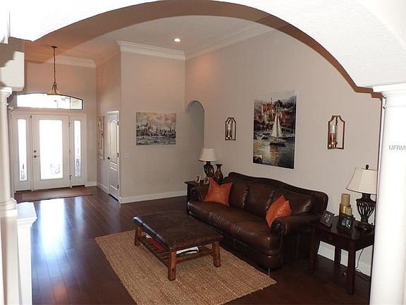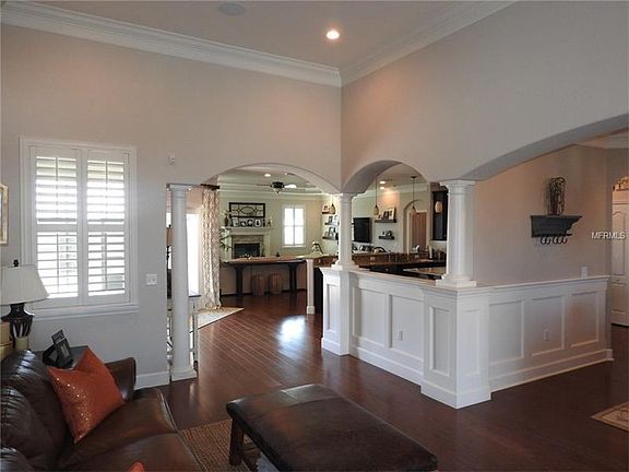 Absolutely stunning! This 4 br / 3 bath triple split plan offers so much functional, yet beautiful living space. The kitchen, which boasts wood cabinetry, stainless appliances, a large island, tons of storage space, and desk area is so spacious and is located in the center of the home, overlooking the large family room. The family room boasts a lovely wood-burning fireplace with beautiful stonework and wood mantle. And the formal living and dining rooms offer additional space for gathering or entertaining. The over sized screened lanai has tons of pavers and offers the perfect retreat to unwind at the end of the day, and overlooks the private, fenced back yard. Additional features include lots of beautiful crown molding and wainscoting, pavered driveway, granite countertops throughout, engineered hard wood flooring, tray ceilings, 4 security cameras, distributed audio system, plantation shutters, large laundry room, and 2 car garage.
