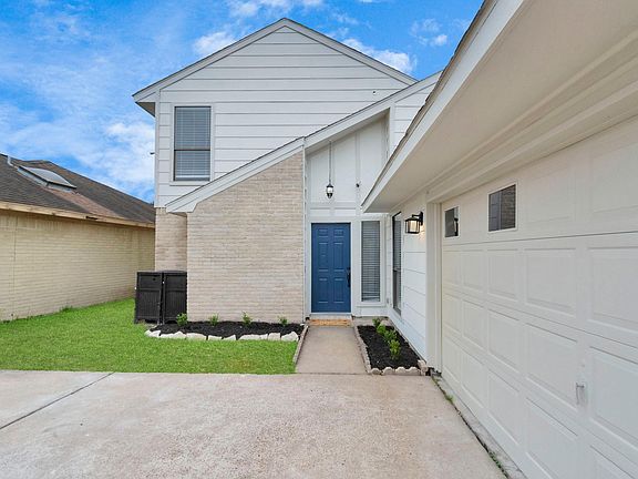 Beautifully renovated home with soaring ceilings, fresh exterior and interior paint, new wood laminate floors throughout! Features a large dining room or flex room, spacious living area with beautiful fireplace and modern look gourmet kitchen! Kitchen features new SS appliances, new 42" cabinets with soft close, gorgeous Calacatta Quartz countertops, subway tile backsplash, LED lighting and brushed gold sink fixtures, drawer and cabinet pulls! Gorgeous custom black and white wood and wrought iron staircase! Upgraded primary bath suite with added second sink and enclosed vanity area. Lots of storage closets including Huge walk-in primary closet! Two ample bedrooms and full bath upstairs with new LED lighted ceiling fans, wood laminate flooring, fresh paint and updated bathroom! New electrical wiring and service panel. Convenient location, close to freeways, dining, shopping. Don't miss this one!