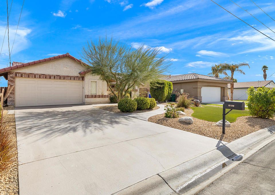 Absolutely spotless three bedroom two full baths on a quite cul-d-sac street in Palm Desert Country Club, featuring low HOA dues of only $398/year, which includes gated swimming pool, spa and club house. This home makes for a great full time, part time/vacation, first time home buyers or investment property. This is a great condo alternative for those not looking for high HOA dues but a country club environment. The open floor plan with vaulted ceilings, porcelain tile floors and custom plantation style interior shutters. The kitchen has upgraded stainless steel appliances, including double door bottom freezer refrigerator, gas range with double ovens and a two drawer Fisher& Paykel dishwasher. There is upgraded vinyl windows, sliding glass and French doors. The large outdoor fully screened Alumawood patio cover creates additional outdoor living space. The property also has an owner owned 2.7Kw solar system. The 14 SEER HVAC system was recently updated. Front yard features a small courtyard and low maintenance landscaping, rear yard desert landscaping and permanently installed spa/hot tub. Oversized two car garage and fully insulated automatic garage door. Do not miss out on this great house. Seller financing is available. Call today.