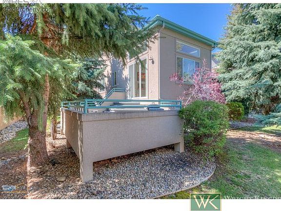 Spectacular multi-level end unit in secluded enclave of townhome style condos. Amazing Flatirons views from top floor master suite. Bright & open with high ceilings, walls of windows, gas fireplace, plantation shutters & hardwood floors on main level. Spacious kitchen highlighted by tile counters, maple cabinets, center island with gas range & breakfast nook. Lower daylight level has family room, study, bedroom & bath. Plenty of storage. Back deck leads to small yard.Easy no maintenance living.