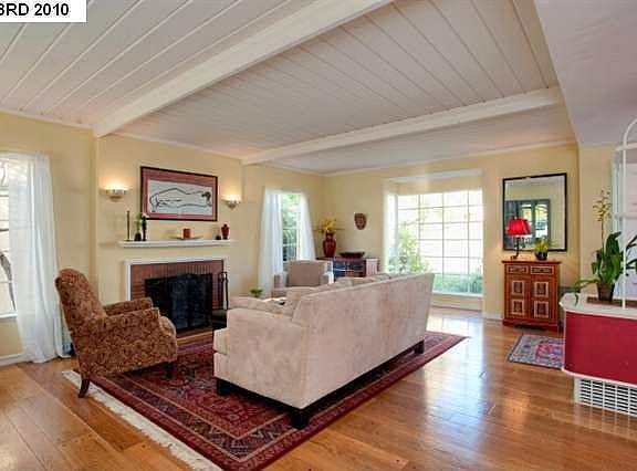 Redwood Heights Art Deco! 3 bedroom, 1.5 bathroom w/original maintained character! Beamed ceiling, hardwood flrs & wd burning FP in living room. Wood floors throughout main level. Finished basement w/family rm, bookcases, and double doors to rear yard. 3 car tandem! Garden oasis! Corporate owned!