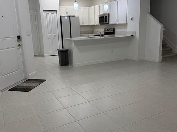 Courtesy of Barr Agency Real Estate Spacious and bright, built in 2023 this 2-story corner unit townhome shows like a model home. Featuring 4 beds, 2.5 baths, a private entrance, paver driveway, 2-car garage. Located in the gated Lakeshore at The Fountain community, it backs up to a peaceful tree line/preserve and is minutes from The Shoppes at Palm Beach Outlets and The Gardens Mall. Tile floors throughout the main floor, carpeted bedrooms, and ceiling fans in all bedrooms. Features in-unit laundry with washer and dryer, hurricane impact windows, sliding doors, quartz countertops, stainless steel appliances, and an undermount kitchen sink. NEW resort-style pool. Rent includes internet and water utilities.