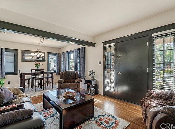 Super charming Craftsman with large front porch in the "Wood Streets" neighborhood! This gorgeous petite home actually feels larger than the posted square footage and boasts original hardwood floors, beautiful formal dining room, original wood framed windows throughout, central air/heat (less than 10 yrs old), and indoor laundry (stackable washer/dryer included). The vintage kitchen, with lots of whimsically painted cabinets and original ironing board, also includes a cute little breakfast nook. Gas stove and refrigerator are included. Hardwood floors in all three bedrooms, with a separate entrance off the back bedroom, in case you want to use this room for guests; this room was added and permitted in 1945. The large yard is spacious enough for a pool, yet currently has raised garden boxes, lemon and pomegranate trees, and a large shed on the back of the detached 2-car garage. Quiet cul-de-sac location and walking distance to Central Middle School and RCC. Short drive to downtown Riverside and the Riverside Plaza. This one is going to sell fast, so don't hesitate. There's plenty of time to close escrow and toast to the New Year in your new "Wood Streets" home!