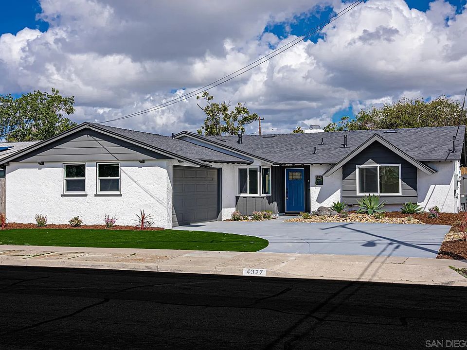Prestigiously situated in the highly desired Mount community of Clairemont, this meticulously remodeled 4 bed, 2 bath home welcomes any visitor to an open layout and largely presented great room that connects the kitchen, dining, and living spaces all in one. Complete with fully top to bottom remodel, this gorgeous home presents a new roof with owned solar, newer AC/HEAT and duct work, and a newer water heater just to name a few. Designed with luxury vinyl flooring, new windows, stainless steel appliances, shaker cabinets, quartz countertops, custom tile work in kitchens and bathrooms, and exterior, new drought landscaping with succulents and turf along with so much more. This beauty is a newly imagined perspective in this iconic San Diego community, centrally located to freeways, schools, shopping, and dining. Start your next chapter in a home that truly pays testament to humble design and practical functionality.