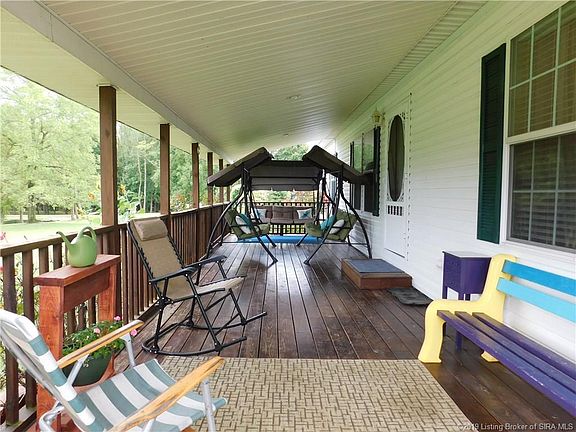 This home takes center stage...not just because it is absolutely adorable inside but the location is perfect for anyone wanting to jump in the car and head to Scottsburg, Madison, North Vernon, Seymour or launch your boat at Hardy Lake. This home is situated on 6 acres and offers 3 bedrooms, 2 full baths, living room, den, dining area, kitchen with stove, refrigerator, dishwasher, walk-in pantry, utility room with washer & dryer, covered front porch overlooking stocked pond, detached 40x24 garage, utility shed, garden area, blackberries, blueberries, strawberries, sunflowers, fruit trees, fenced on 3 sides partially wooded, just don't get near the beehives just past the garden. But don't worry, the sellers are taking those with them. Call and get your showing scheduled before it's gone...Located 1/2 miles from Scott County Line and only 2 miles from Highway 3.