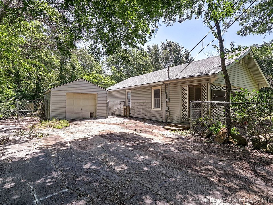 Investor or first time home buyer ready! Spacious 2 bedroom 1 bath home w/ 2 living areas! Spacious bedrooms, kitchen with ample storage and double basin sink. Nearly one full, secluded acre w/ pond, 1 car garage and large shop! Fully fenced w/ private drive! Just minutes to Downtown or Tulsa Hills. Owner Agent.