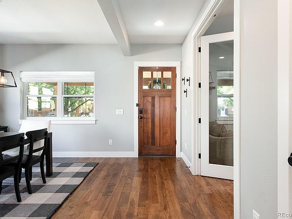 Built by TK Morrison + nestled just four blocks from Tennyson Street, this exquisite residence emanates luxurious detail. Classic Denver Square-style architecture captures five-inch hickory floors + high ceilings throughout. Glass French doors introduce a dedicated office space situated next to a formal dining area with seamless access to the kitchen through a caterer’s pantry. Here, honed quartz counters, an island + chef-quality appliances evoke ease in entertaining — a quality elevated by an open living space with a dual-sided gas fireplace. The upper level encompasses secondary bedrooms with mirrored layouts anchored by a dual-entry bathroom, as well as a ravishing primary suite. The latter offers vaulted ceilings, an expansive walk-in closet, vast tub, glass-enclosed shower + a linen closet. Nearby is a laundry room with a custom vintage sink. Indoor-outdoor living is treasured here, with a covered patio, hot tub, gas fire pit + fireplace. In addition to the main residence, this property features a gorgeous ADU (offering an additional 648 sq ft) with skylights, vaulted ceilings, laundry + a full-size kitchen.