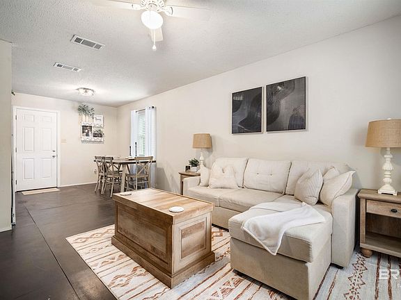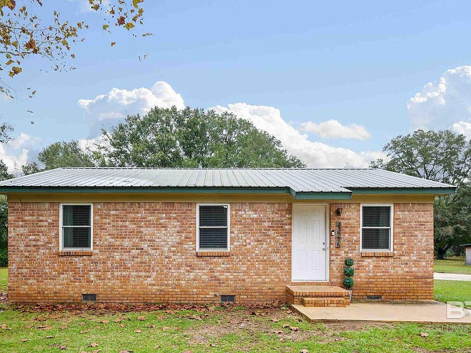 Back on the market at no fault of seller. Located just outside of Bay Minette in the Crossroads community, you will find this 3 bedroom, 1 bath, brick rancher. Sitting on over an acre of land, this home features a metal roof, upgraded windows, fresh interior paint, updated bathroom, blinds on all the windows, and new light fixtures. Outside, there is a one car attached carport and outbuilding. All appliances, including washer/dryer and refrigerator, convey. Schedule your private tour today! Buyer to verify all information during due diligence.