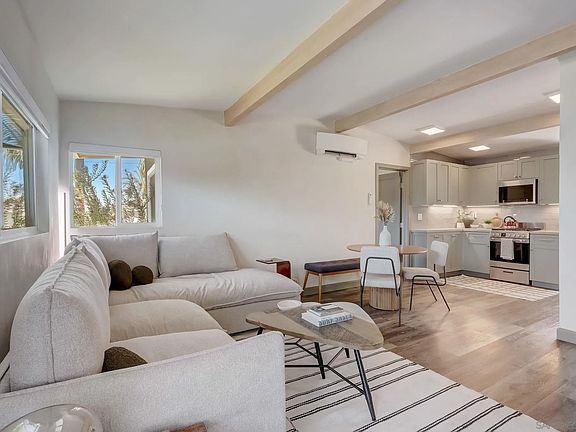 This upgraded, contemporary Bay Park home is just blocks from Mission Bay and is absolutely stunning down to the last detail. Meticulously cared for and designed to optimize the space, this home lives much larger than the sq footage! Upon entering, you'll be greeted by a bright open floorplan with beautiful exposed beams and warm, durable new flooring throughout. The designer kitchen is the focus of the home, featuring custom cabinets, sleek countertops, gorgeous backsplash extending to the ceiling and high end appliances! Each bedroom features custom storage by California Closets, efficient mini-split heating/air and new windows and doors! The kitchen flows to the perfectly manicured backyard, where you can grill on the custom BBQ island, and enjoy al fresco dining surrounded by a lush tropical landscape! The backyard also features an infrared sauna, storage shed and direct alley access for possible off street parking/garage. Freshly painted, newer plumbing including tankless water heater, plus Sunrun solar panels to keep the electric bill low. Walk to Bay Park Village for great restaurants, coffee, and yoga! Nearby trolley stops grant easy access to concerts, sports events and more!