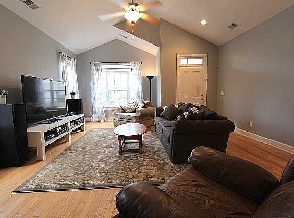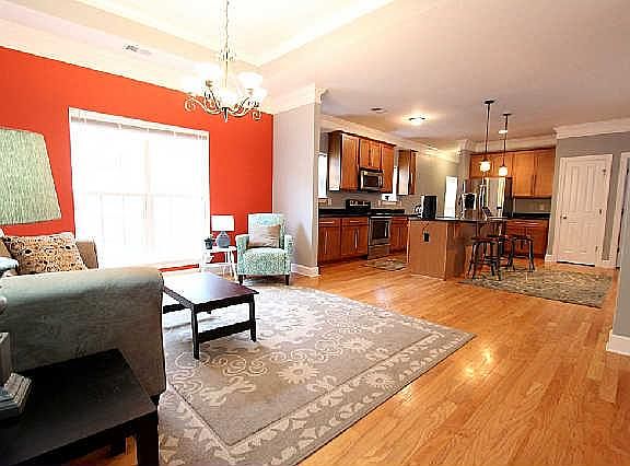 One Level Living with 2-car garage and covered porch! Stainless Appliances and granite counters in super-open kitchen! Hardwood floors! Laundry Rm opens to master closet! Gas FP! Vaulted ceilings! All mowing covered thru HOA!