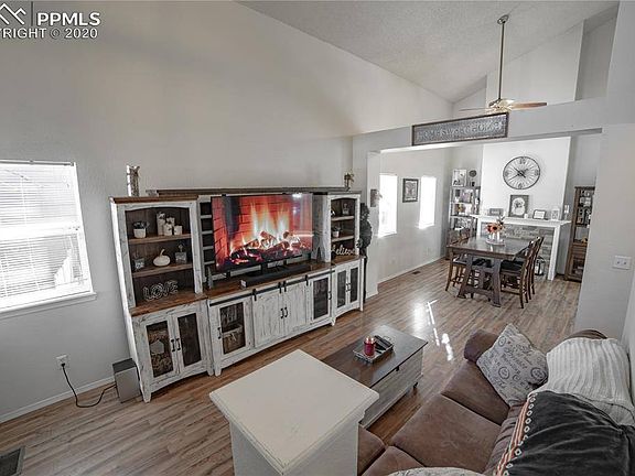 'MOVE-IN READY..." A must see in a great location - conveniently located between Ft Carson, Schriever and Peterson AFB! This home boast great curb appeal with its newly painted exterior, modernized lighting, and all new gutters. Main level boasts open floor plan, cathedral ceilings and wood laminate flooring throughout. The spacious kitchen has plenty of counter and cabinet space, walk in food pantry and stainless steel appliances! Water filtration system provides kitchen, laundry, and bathrooms with clean, soft water.