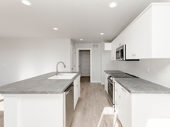 Enter into a brand new home in Meridian, Idaho and enjoy its benefits and stress free living! Welcome home to the timeless Poe 1471! Here you'll enjoy a thoughtfully laid out living space with an open concept main level and all three bedrooms tucked upstairs. The kitchen island overlooks the living area so you can host guests while staying at the center of the action. Easily slip outside for some fresh air on the back patio off the dining room. Retreat upstairs where the primary suite and two other bedrooms await. Photos are of the actual home!