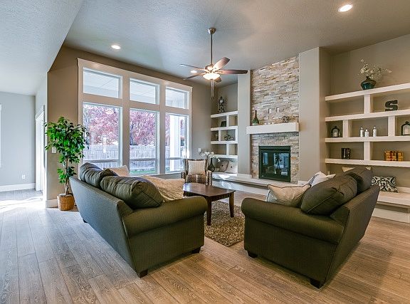 "The Dakota" by Stetson Homes. Spacious great room with floor to ceiling stone fireplace. Gourmet kitchen with slab granite counter tops. Stainless steel appliances and island bar. Main floor Master Suite includes: dual vanities with slab granite counter, soaker tub and tiled walk-in shower. Large walk-in closet. Showcasing a Sun Room with double doors off Master Suite. Full landscaping with partial fencing. Cul-de-sac location in this premier West Boise subdivision.