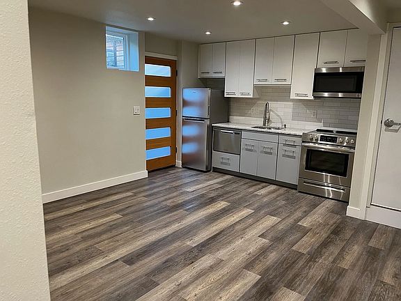 Remodeled basement unit (Unit B) in a duplex with separate entrance. New kitchen, bathrooms, floor, windows, and paint. Bathroom has space heater and towel warmer. Mini-split A/C system in each bedroom and living room, with individual temperature control. Washer/dryer and back yard are shared between units. Upstairs main floor is separate unit with two tenants, and separate entrance, with good sound dampening between upstairs and basement. Close-in location with great access to freeways, bike lanes and downtown. Great location for a couple! No smoking of any kind allowed inside of rental. Cats are allowed, but no dogs. All utility costs are split with tenants in upstairs unit, 55% upstairs and 45% basement unit. Length of lease is flexible, but preference for minimum 12 month lease. Contact with any questions or to view property. Month to Month