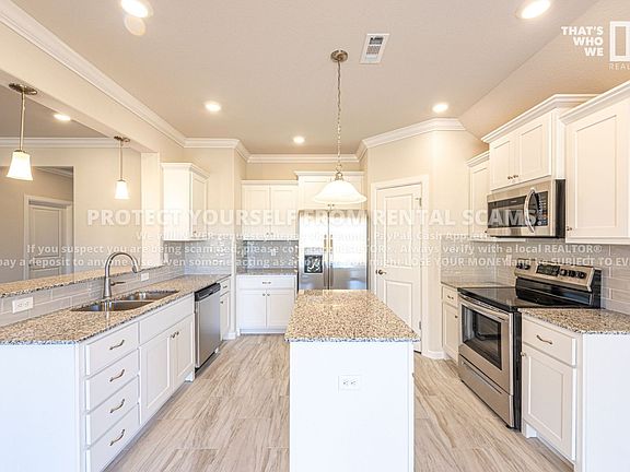 AVAILABLE NOW! Come check out this beautiful 3 bedroom 2 bathroom home located just minutes away from shopping, eateries, schools, and a short drive to the University of Arkansas! Head inside from the partially covered front porch into the spacious living room with a gas log fire place, ample natural light, and a ceiling fan! Flow into the kitchen highlighted with a tiled back splash, lots of cabinet space, an island, a pantry, granite countertops, and stainless steel appliances! Check out the primary bedroom and private ensuite with a double sink vanity, walk in closet, and whirlpool bath tub! Relax and relish in the fenced in backyard under the covered back patio!