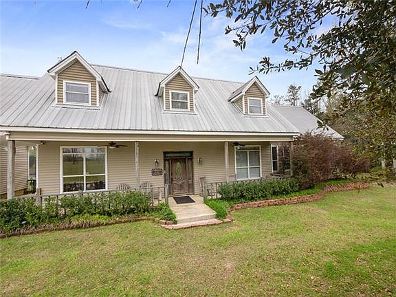 This beautiful acadian home is located just north of Folsom & rests on 7.5 high & dry, rolling acres. Spacious, FIVE bed, 3.5 bath, open concept floor plan was built to entertain. Huge 21x18 living room opens to dream kitchen w/ granite counters, SS app, & eat at breakfast bar. Private master suite w/ walk in closet, large tub & separate shower. Massive game room upstairs. Outdoors enjoy covered, concrete patio, serene front porch views, huge, 960 Sqft 3 car garage w/ a 1/2 bath & 864 Sqft camper/rv shed.