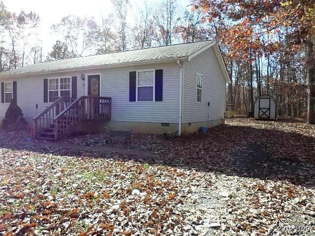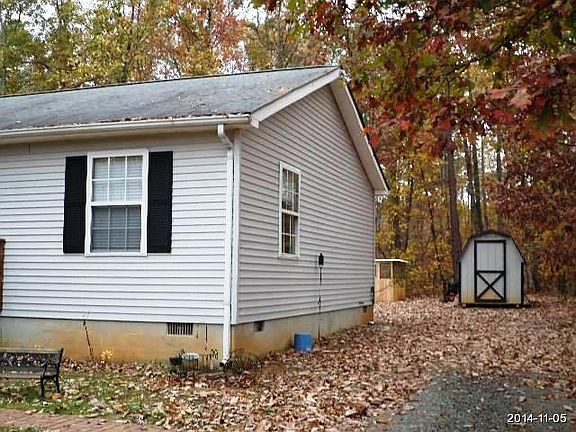 Split bedroom design in this 1998 vinyl ranch in good condition on one and a half acres with 1200 finished square feet, three bedrooms, two baths, heat pump with central air, abundant hardwood floors, and rear wood deck.