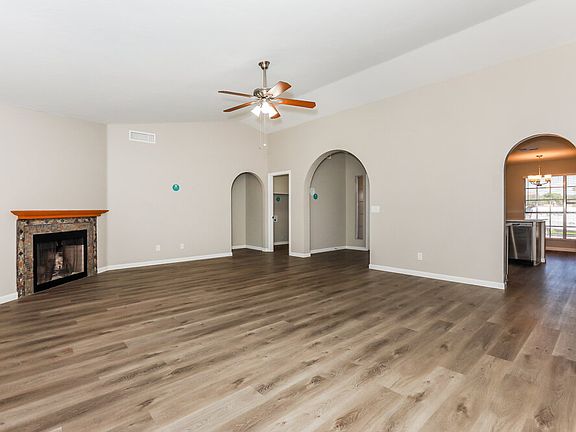• Exterior features: 1 Story, Dual-Vanity Sinks, Eat-in Kitchen, Granite Countertops, High Ceilings, Near Parks, Near Retail, Open Floor Plan, Quartz Countertops, Smart Home, Stainless Steel Appliances, Walk-In Shower