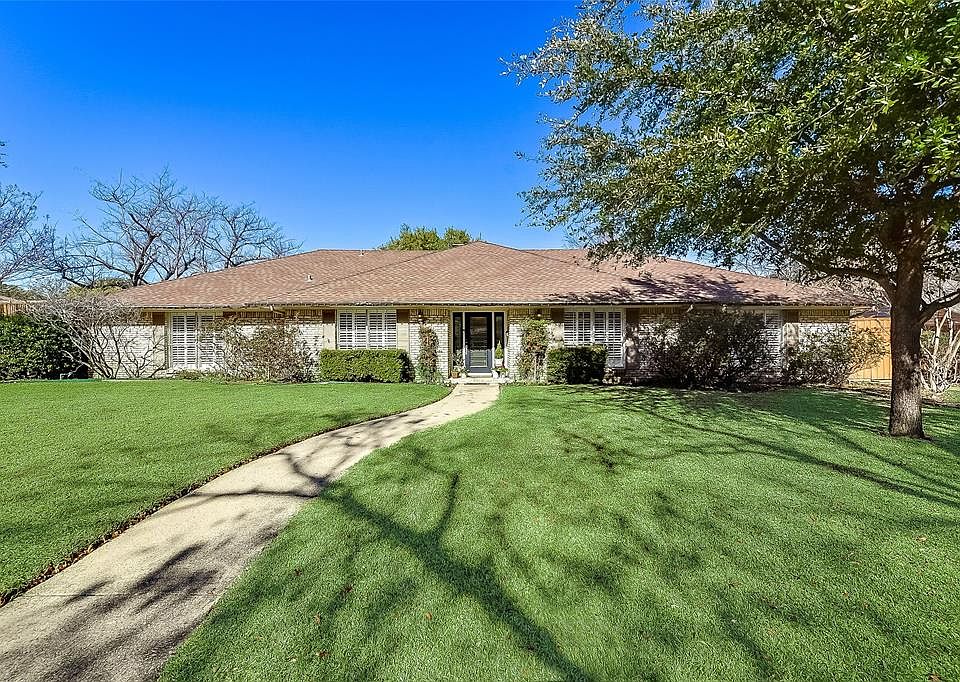 Great opportunity inside I-635 in a desirable neighborhood on a quiet street! Airy, light-filled, ranch-style home with multiple outdoor living spaces ready for your personal touch. Spacious living area with wood-burning fireplace and vaulted ceiling overlooks the backyard with pool. Bright kitchen area includes eat-in dining and walk-in pantry with plenty of square footage to create the kitchen of your dreams. Layout features master suite and two bedrooms in east wing and one bedroom with adjoining bath in west wing creating private guest suite. Side yard can serve as second outdoor living area or provide plenty of room to add on, if desired. Property is being sold AS IS and priced to renovate.