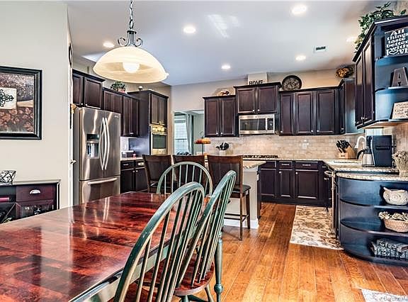 Remarkable well maintained home tucked away on quiet cul-de-sac street, backing up to the woods & creek! Stunning gourmet kitchen features granite counters, stainless double ovens, gas range, w/ large island & walk-in pantry. Entertaining is a breeze w/ spacious family room, breakfast area, office and a living & dining all on main floor! Open the back doors & step out to the landscaped & fenced-in backyard overlooking the creek & one of many neighborhood walking trails. The bedrooms all feature large closets w/ attached bathrooms. Master bedroom, bath & closets are spacious w/ upgraded crown molding/tray ceilings & sitting area. With 2 bonus rooms, there is space for everyone! The 3rd floor features a bonus, bedroom & full bath! All professionally painted and ready for the new owners! Great neighborhood amenities: 2 pools, tennis courts, fitness center, club house & walking trails! Award winning schools! Ample storage with built-in shelving in garage & brand new outbuilding!