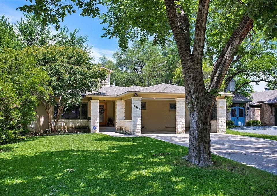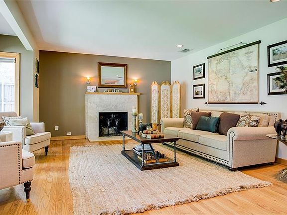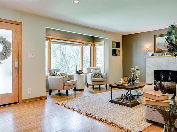 The one you've been waiting for! This is a one of a kind, SINGLE STORY Bluffview beauty! Brick & stone exterior with a unique mid-century modern renovation inside! The perfect home for entertaining family & friends! Original hardwood floors throughout! 2 huge living areas with travertine surround FP & walls of windows! An elevated ceiling with clerestory windows brings in even more natural light. Kitchen has built in refrigerator-freezer, double ovens, gas cooktop, Corian countertops & a huge kitchen island with vegetable sink. 4 bedrooms & 3 FULL baths in a split bedroom floor plan. Office alcove with built in desk, cabinets and drawers. Double doors open wide to the backyard perfect for play, pool and pets!