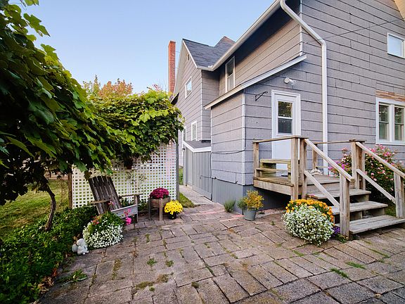 This stately Victorian has wonderfully unique architectural details and so much character! Hardwood floors, cherry and oak trim, wood burning fireplace w/insert, 3 sets of gorgeous pocket doors, window seat, built-ins and a showstopping oak staircase in the large foyer. The parlor, living room and dining room all have sunlight streaming in. A half bath and charming white kitchen with breakfast nook complete main floor. Upstairs there are 4 bedrooms, full bath with claw foot tub and half bath with shower and sink only. Many replacement windows, boiler about 5 years old, updated to 200 amp electrical plus 2 year old garage door and opener on the 2 car garage. Amazing, covered wrap around front porch, brick patio, accent and container gardens and more! Close to downtown & great beaches!