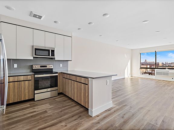 Welcome to 1 bed 1 bath residence located in the heart of West New York. This unique floor plan provides an ultra modern kitchen with LG stainless steel appliances, washer/dryer, custom wood cabinetry, and walk-in closets. These sleek, elegant finishes with open layouts, and oversized windows overlooking the Manhattan skyline allow a flood of natural light. Easy, 24 hour transportation to NYC makes this location perfect for commuters. You'll also have an abundance of local restaurants, bakeries, shops, and bars just outside your door. Covered parking as well as EV parking is available as well as bicycle storage. Additional storage is also available within the building. Outside you'll enjoy the landscaped terrace space and lounging furniture as well as a dog park for any of your furry friends! WE'D WOULD LOVE TO SHOW YOU AROUND, PLEASE CALL US TODAY! * pictures from similar virtually staged unit*.