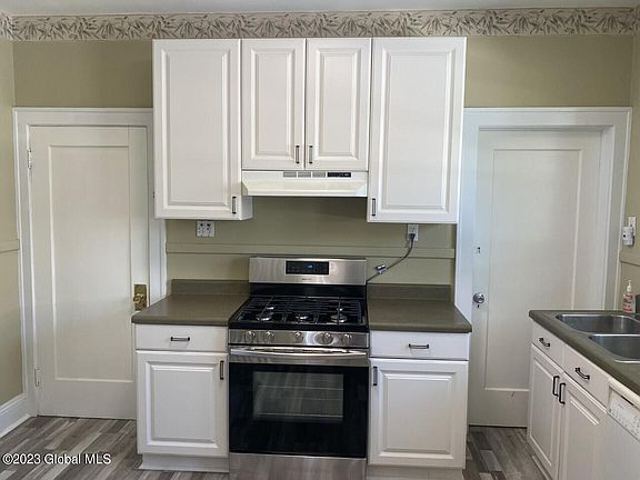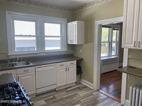 Very well maintained 2 bedroom Bungalow on a quiet tree lined street in the ''Desirable Port Schuyler'' area of Watervliet. Gleaming hardwood floors throughout the living room, dining room, and bedrooms. The home also features both front and rear enclosed porches, as well as an enormous walk up attic perfect for storage. The full basement has a new hot water tank, recently serviced boiler , laundry, and farmhouse style sink. Updated kitchen and full bath, a one car garage, and a fully fenced backyard make this home a gem at this price.