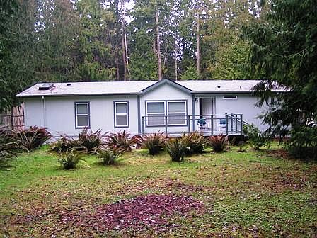 Investors look! Newer 3 Bed 2 Ba, 7 private lots back to Chimacum Creek. Lg Mstr w/French doors to soaker tub & shower. Many skylights! Bright & Sunny, level, garden beds, shed, 2 lg decks, room for RV plus cars. Extremely well maintained & clean home. Flooring upgrades, brand new dishwasher, great rental potential! Or enjoy yourself! Great artsy feel w/fences cut from trees on land. Den or office, large kitchen w/storage & two dining options. Build garage or shop! Redmond Manufactured.