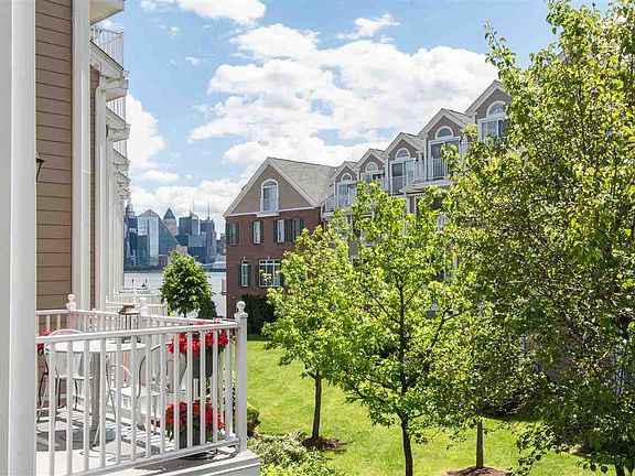 Extraordinary and pristine waterfront Essex style home!!! One of only floor plans with no one above or below you. Two balconies and a patio. Fabulous NYC and Hudson River views!! Chef's kitchen with granite counters, custom cabinetry, and newer stainless steel appliances and large center island. Whole house custom painted. Extra half bath and in family room. Rich wide plank hardwood floors. Crown moldings. All bathroom remodeled. California closets. Parking for two cars-one in garage with custom flooring and one in driveway. Community features two pools with Jacuzzis, tot lot, waterfront promenade and free shuttle to ferry and light rail. Steps to 158 bus to NYC. Close to restaurants and shopping. Do not miss this opportunity!!