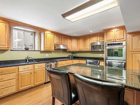 Brilliantly executed, this home had a make over 13 years ago that included a 2 story Game room addition and a 49' long, heated and finished garage/shop. At the same time, the existing structure and all of the above, received a maintenance free exterior, including: Roof, windows, siding and aluminum soffit, facia, gutters. Fabulous as all that is, the icing on the cake is the gorgeous kitchen. Tons of custom oak cabinets toped by many feet of granite countertops, a chef's dream. Includes all stainless appliances: Double oven, refrigerator, microwave, dishwasher and beverage fridge. The jaw dropping game room on the 2nd level includes: 2 arcade games, dart board, pool table, pool table light and chairs, Bar and TV. The Garage/shop is a paradise unto itself. All insulated, drywalled with it's own furnace, 8'9'' high garage door and 2 - 220v outlets. Garage 27x20, shop 22x15. The 15x28 storage area under game room is insulated, has hot and cold water lines and a drain, but is has no drywall. This area has many possibilities including 4th bedroom. Office in LL has many possibilities as well with hot and cold waterlines, drain and many electric outlets. Backyard is entirely surrounded by a 6' privacy fence and has areas that lend well to outside storage. Kitchen TV also included. Please exclude: Flag pole, game room: bar fridge, wall decorations and chandelier. Well planned, well executed home that offers something for everyone.