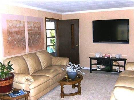 Very cute & well-maintained double-wide in Country Estates 55+ Park. Remodeled in 2008 including new vinyl windows, floor coverings & kitchen updates. Nicely landscaped, shade trees, covered deck, brick patio & pond. All appliances included (refrigerator, microwave, range/oven, washer, dryer) plus 54 flat screen LCD television! Garden shed & lawn mower too. Relax & retire here - you won't be disappointed!