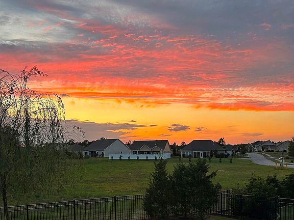 Charming 3bd/2.5 bth OPEN FP home w/in desirable resort style golf community. Excellent amenities: 24 hour gated entrance, club house, tennis, sports complex, playground, restaurant, pool with splash pad, grill, fitness center, and social activities. 27 hole course w/memberships available. You will fall in love BEFORE entering home w/the STUNNING etched glass dbl front door, sidelights & transom filling home w/welcoming natural light. Home offers many upgrades including designer trim package, 9/11ft ceilings & plantation shutters thru-out. Living w/lovely plantation sliding doors to enclosed 4 seasons rm w/vinyl windows leading to large, low maintenance trex board deck. Private, fully fenced bkyard w/fantastic views of sunsets. Hardwood thru-out Kitchen & main living areas including Primary bdrm. 11ft Living w/Fireplace, ceiling fan & lighted book/hutch. Gorgeous 11ft kitchen w/granite countertops, subway tile backsplash, ss appliances, dbl oven, gas stove, island, pantry, eat-in & large bar for those family gatherings as well as custom coffee/wine bar w/lighting. 11ft Formal Dining and french door entry to private office. Master w/9ft trey ceiling, hardwoods & ceiling fan. En suite w/Dbl vanity, garden tub, sep shower & water closet. You will LOVE the primary walk in closet offering barn door entry to custom built organizing for clothes, shoes AND jewelry/accessory trays! 2 car Garage w/storage & sink. Driveway w/3rd pad & paved path to garbage cans. A MUST SEE!