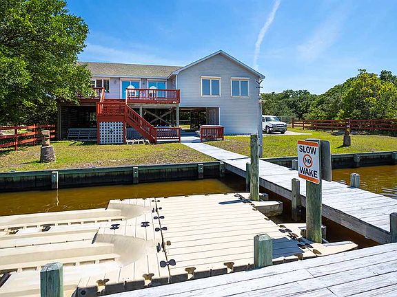 Incredibly well maintained canalfront house with extensive boat dock and entertaining areas. Original owner/builder has built this quality home with beautiful pine floors, slate countertops, cathedral ceiling and hurricane shutters. Enjoy the generous covered porch, or relax under the house on the elevated entertainment deck. Also onsite is a detached garage with elevated ramp for UTV's, toys, etc... Used skiff and polaris UTV included with acceptable offer.