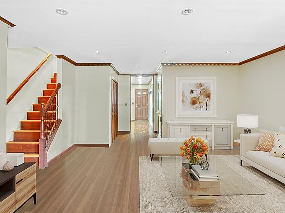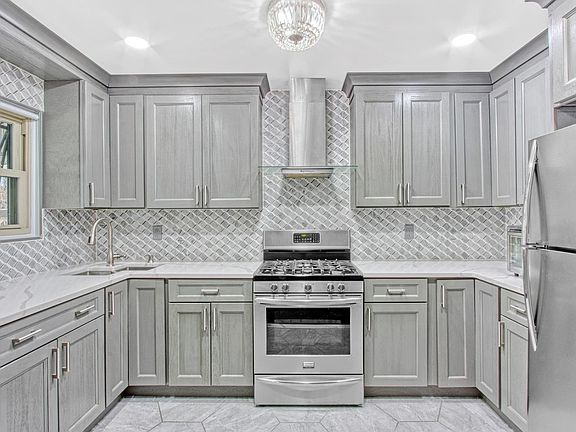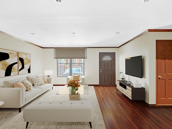 Introducing 433 Bristol Street, a charming two-family townhouse nestled on a serene tree-lined block in Brownsville, between Riverdale Avenue and Newport Street. This meticulously updated property spans over 2,395 sq ft, with fine attention to detail. The main level boasts an expansive duplex layout featuring a generously sized living and dining area, a separate renovated kitchen equipped with custom wooden cabinetry, sleek tile backsplash, stone countertops, and high-end stainless-steel appliances. Additionally, there are three sizable bedrooms, including a master suite with a deep walk-in closet, and a full bath with a soaking jetted tub, pristine stone tiling, and modern fixtures. Completing the main level is a convenient half bath for guests, along with a Washer/Dryer hook up. On the top level of the property, you will find a two bedroom and one bath apartment with similar finishes. Additional property features include the gorgeous lush backyard, which is perfect for enjoying the outdoors or entertaining, a gated driveway for parking, ample closet and storage space, recessed LED lighting, hardwood flooring throughout, and soaring ceilings. Building dimensions: 20 ft x 42.42 ft, lot size: 28.25 ft x 100 ft, along with 4,464 sq ft of unused FAR. This property is only a short jaunt from the 2/4/3 trains at Rockaway Av, as well as local favorites such as Lakou Cafe, Stephlova's Cafe, Arashi Sushi, Jojo's Pizza, Fefita's Resturant, Stephlova's Cafe, etc. Note, the photos have been virtually edited and decluttered.