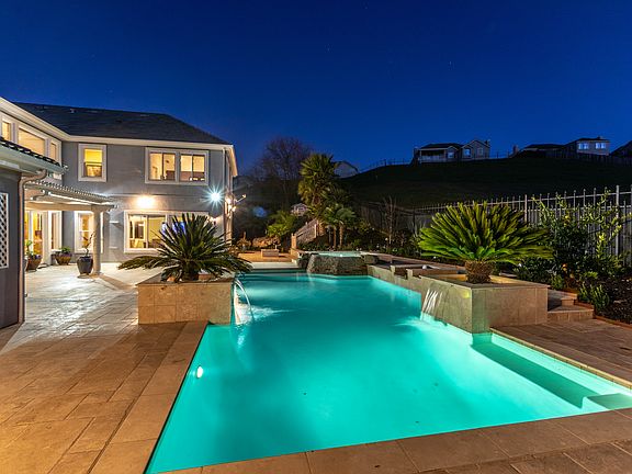 Coveted staff gated Norris Canyon Estates Toll Brothers home at end of exclusive cul-de-sac, borders greenbelt. More than 5,000 SF on more than third acre. 5 en suite beds, main-level guest suite, 320 square foot casita w/ full bath. Soaring ceilings, hardwood floors, light-filled rooms include formal living and dining, office/library, eat-in gourmet kitchen with SS GE Monogram appliances, granite counters, cherry cabinetry. Huge family room connects to fabulous resort backyard. Covered pavilion, outdoor kitchen with grill, refrigerator, sink, burners, pool, rock waterfall, spa, gas fire pit, lawn, mature landscape, play structure, fenced garden, garage for 3 cars, gate to side boat/RV parking. Home automation, security cameras, indoor/outdoor speakers. Access to miles of walking trails, East Bay Regional Park land, private homeowners park, clubhouse, tennis and basketball courts. Minutes to downtown San Ramon, City Center, library, community center, 680 and 580 freeway access!