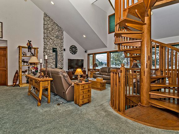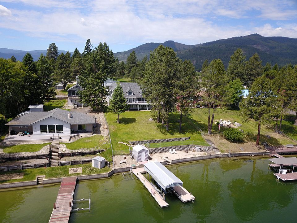 Bring the whole family to the River!! Room for everyone with over 5000 sq ft. in this beautiful river front home. Pride of ownership shows throughout this expansive home. Custom wooden spiral staircase connects the upper 2nd floor nook to the well appointed kitchen and down to the comfortable walkout daylight basement. Wrap around decking on the main floor with multiple staircases provide easy access to large back yard. Large dock with covered boat lift, sandy beach, storage shed and concrete sea wall. Newer 30 year roof. Community boat launch a few hundred yards away. Less than two miles to Riley Creek Campground, under 15 miles to Sandpoint. 25 miles to world class skiing at Schweitzer Mountain Resort.