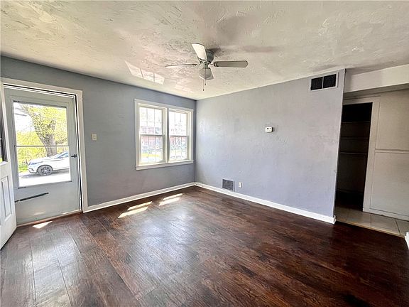 All brick end unit townhouse just waiting for you to move right in! This unit was recently updated and includes sparkling hardwood floors in the large living room. The kitchen includes a fridge and gas stove as well as space for a small kitchen table and a door to the semi-fenced in back yard. The first floor also features in-unit laundry! Upstairs you'll find two nicely sized bedrooms that are newly painted and have plenty of natural light. The full bathroom and a large hall closet round out the second floor.