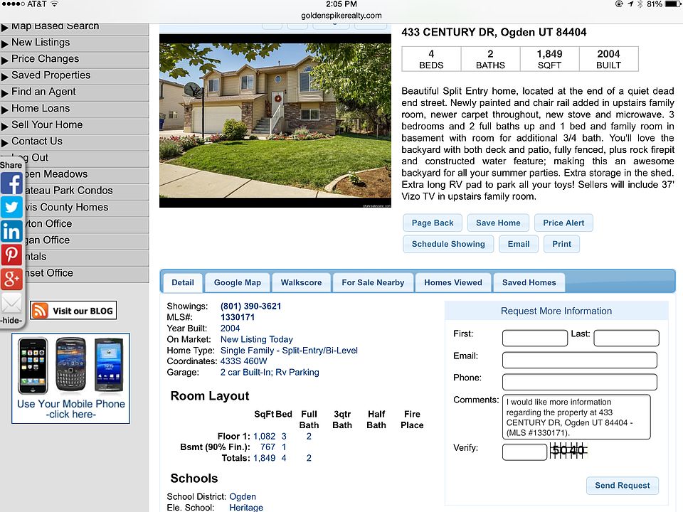 This 1800 square foot single family home has 4 bedrooms and 2.0 bathrooms. This home is located at 433 Century Dr, Ogden, UT 84404.