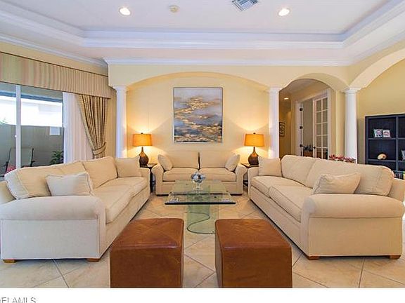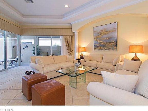 LOOK NO FURTHER! This beautiful home has so much to offer....Tastefully furnished and decorated with neutral tones and 18 inch diagonal tile and crown molding throughout. Master suite boasts lovely view of lake, his and her walk in California closets, luxurious soaker tub and upgraded tile in shower. Kitchen offers stainless appliances, wood cabinets and corian counter tops. This unique floor plan has pocketing sliding doors that opens everything up to the pool & spa area and makes your outdoors become a part of your living space. Electric Shutters on every window and door. Partially furnished, Some Exclusions - see complete inventory list Some of the recent updates: outside of home painted, new screws in lanai, privacy wall on north side of lanai, New Lennox AC in 2011,