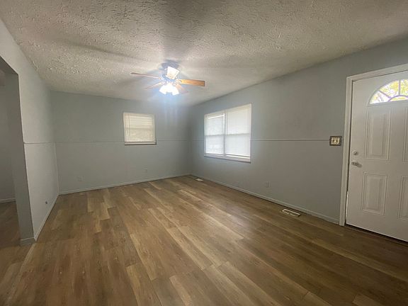 3 Bedroom 1 bath home features stove, refrigerator, central heat and air. Large utility room with washer dryer connections. Carport with additional parking, fenced back yard, and utility shed.